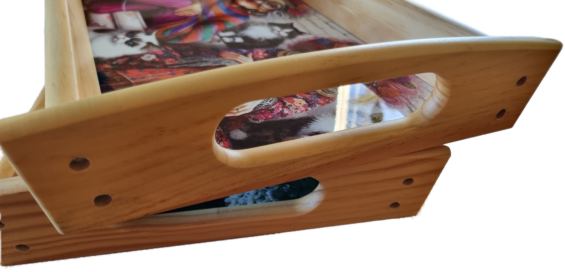 Brickan 18 x 33 cm med träram och sköna handtag att hålla i.