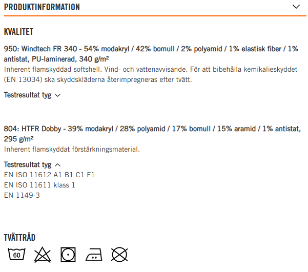 *För att uppnå standarden ska västen bäras tillsammans med ett långärmat plagg med samma certifiering.