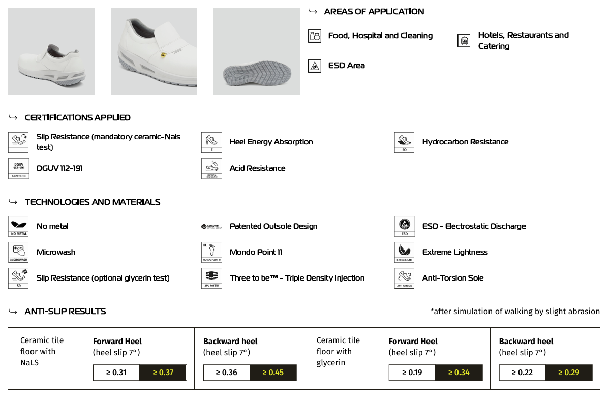 Skorna uppfyller kravet enligt normen IEC 61340-4-3:2017 (IEC 61340-5-1:2016) för elektrisk resistans ESD