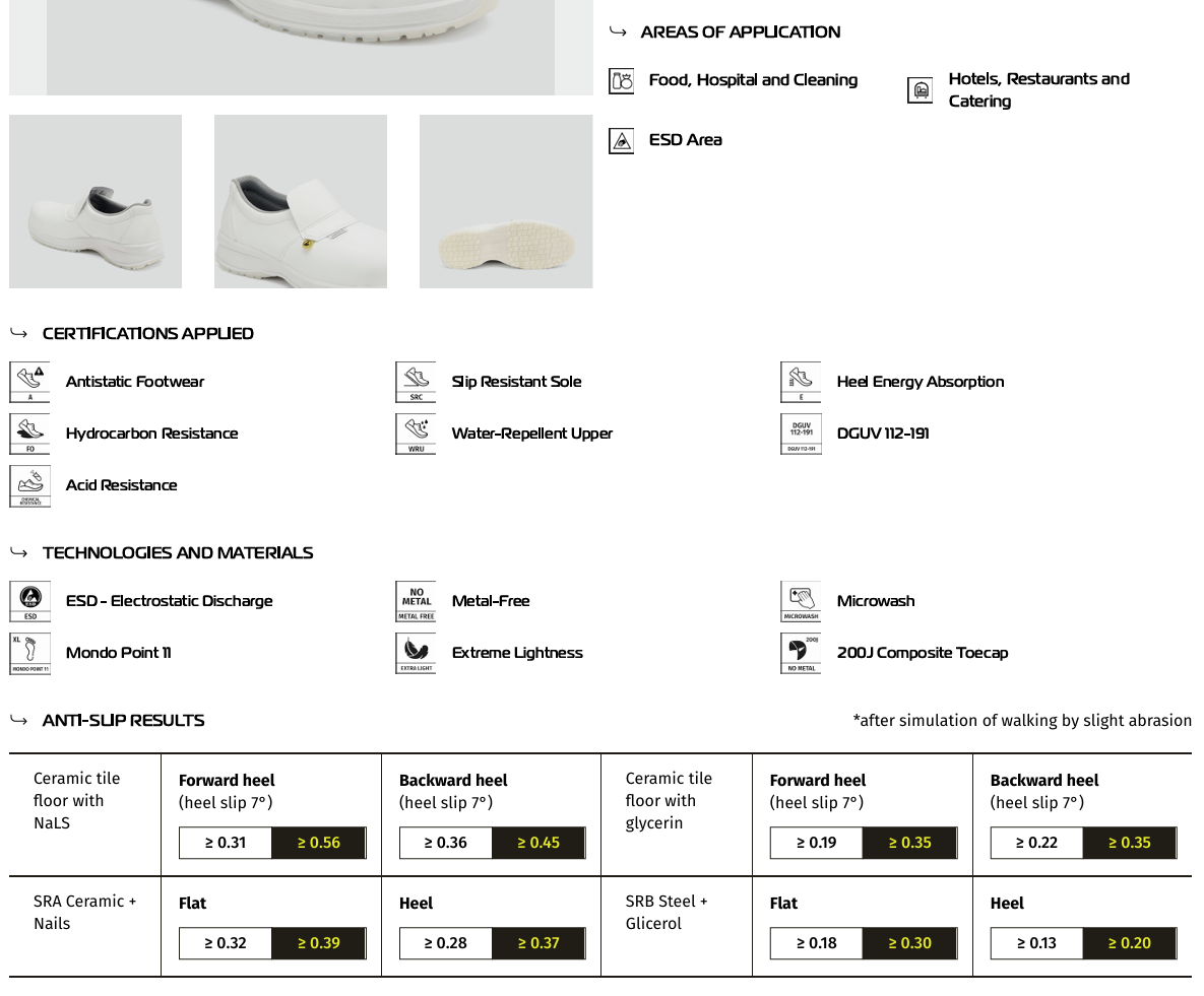 Skon uppfyller kravet enligt normen IEC 61340-4-3:2017 (IEC 61340-5-1:2016) för elektrisk resistans ESD