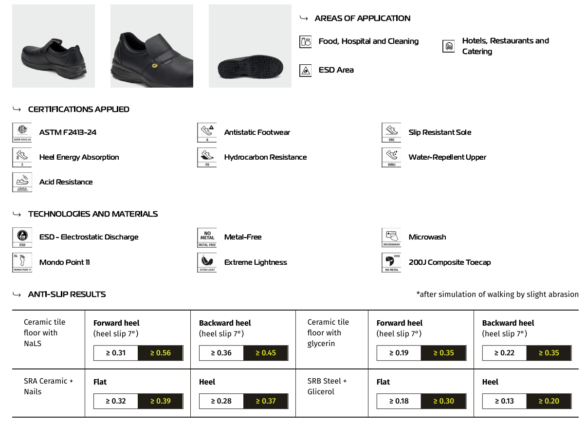 Skon uppfyller kravet enligt normen IEC 61340-4-3:2017 (IEC 61340-5-1:2016) för elektrisk resistans ESD