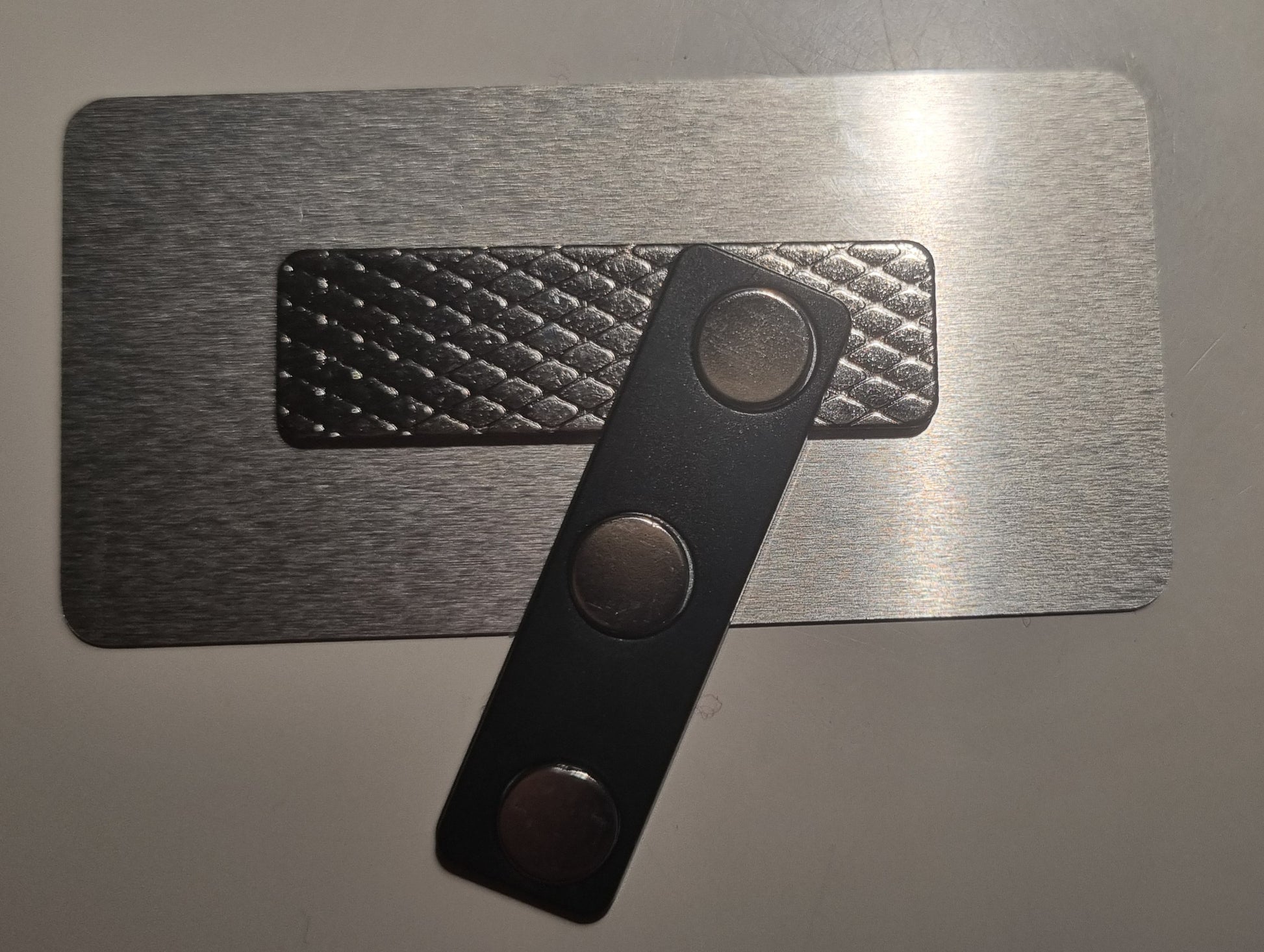Levereras med en magnetisk hållare på baksidan.