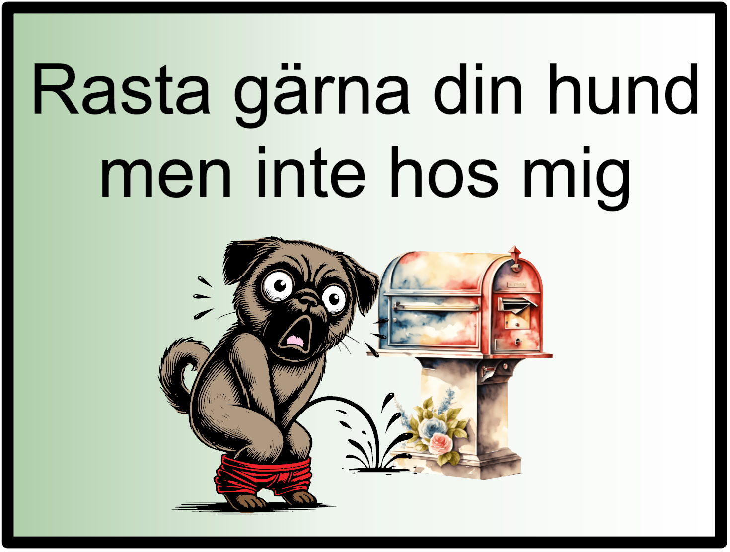 Aluminiumskylt, med texten Rasta gärna din hund men inte hos mig